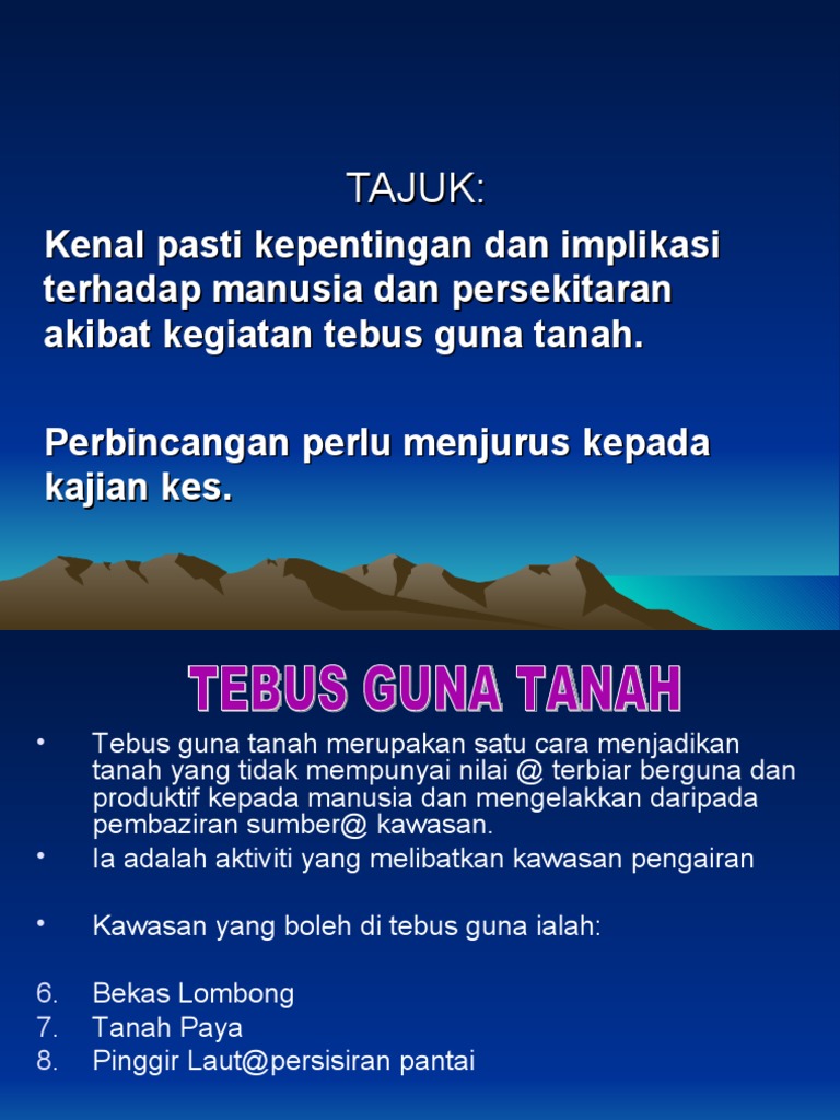 Rsnpp 4 0 Penyataan Dasar Dasar Dan Cadangan Umum Rsnpp 2020 from jpbdgeoportal.penang.gov.my Faktor mempengaruhinya di kawasan kajian. 'guna tanah' sering digunakan untuk merujuk kepada penggunaan yang berbeza jenis tanah dalam satu kawasan pengezonan. Tanah yang ditebus guna itu dipanggil tanah tebus guna atau kambus tanah. Seperti yang kita tahu, daripada struktur muka bumi yang semulajadi untuk dimajukan untuk pelbagai tujuan aktiviti ekonomi. Kenderaan seperti kerata, motor dan. Kesan guna tanah petempatan pola berpusat di jalan pjs2c/11j,taman medan,petaling jaya,selangor terhadap alam sekitar dengan teliti. Peng penggu guna naan an. ◦ membentangkan laporan hasil kajian tersebut.