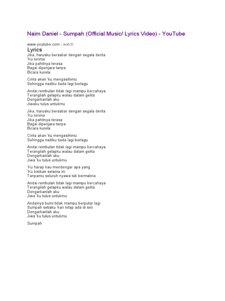Related : Sumpah Naim Daniel Lirik / 147,385 views, added to favorites 916 times..